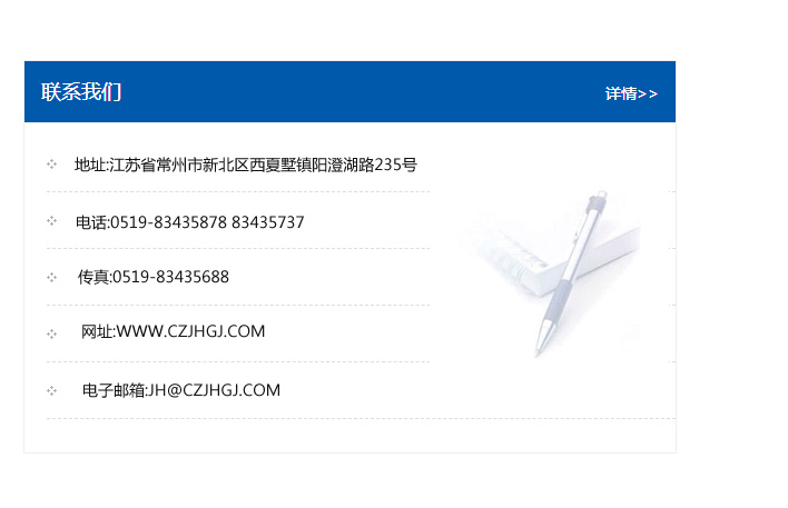 地址:常州市新北區(qū)友邦商務(wù)大廈1幢16、17層  電話:0519-85101652  傳真:0519-85112595  郵編:213022  網(wǎng)址:www.www_nbdafa_com.trymfs.com  郵箱:xiajifengaa@163.com